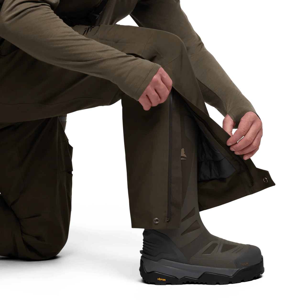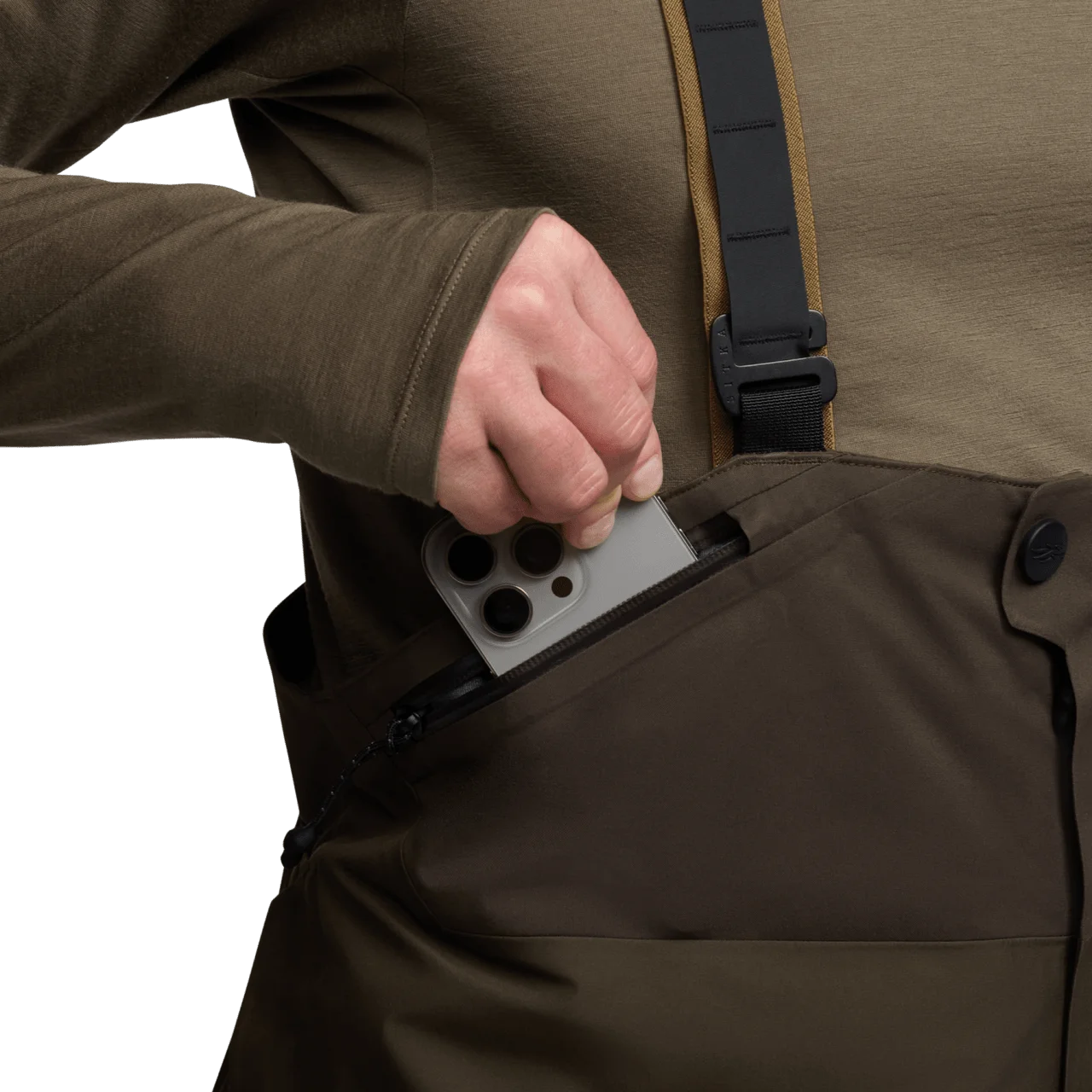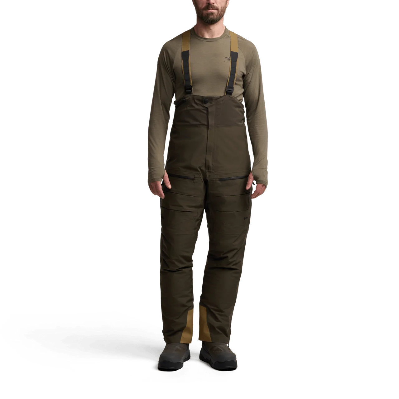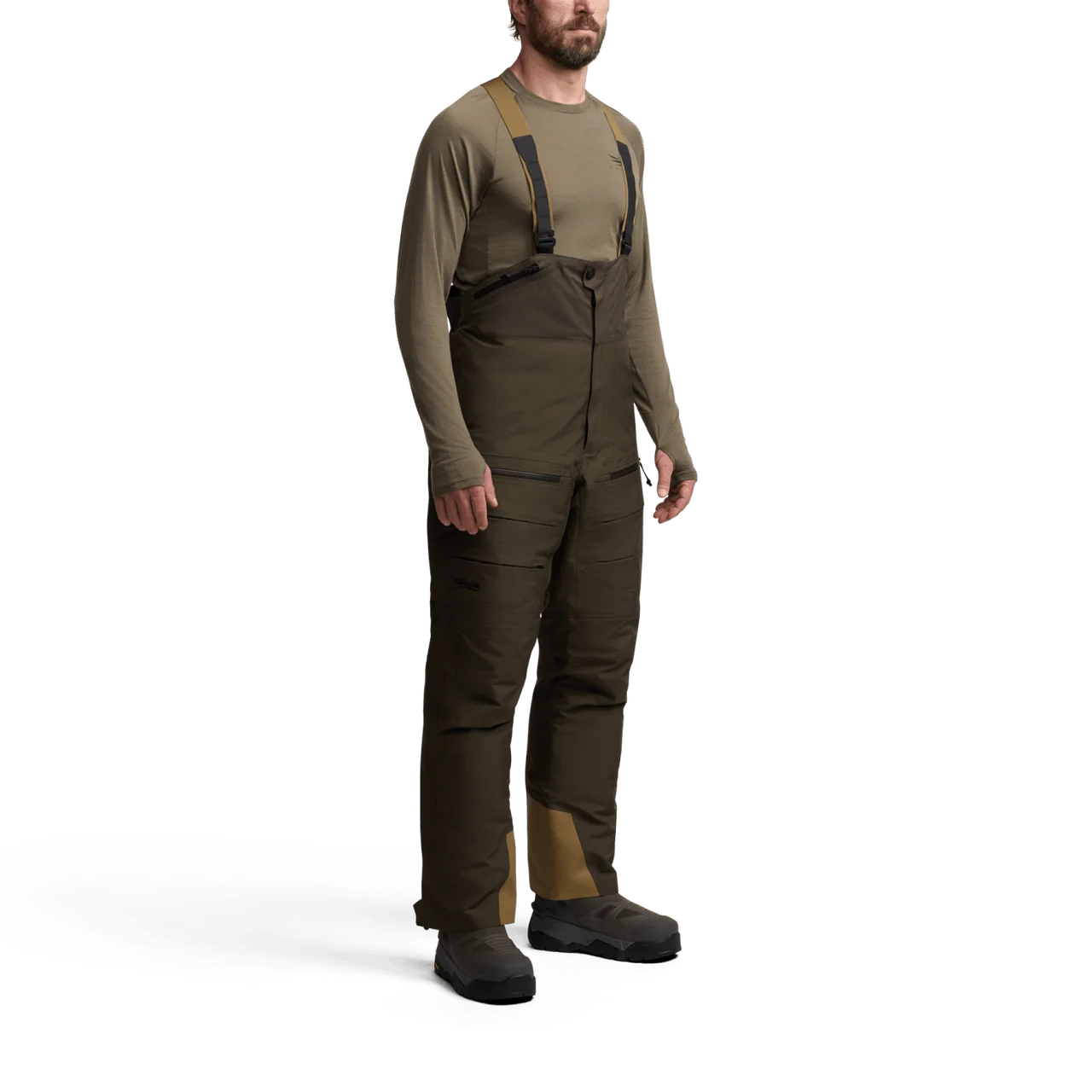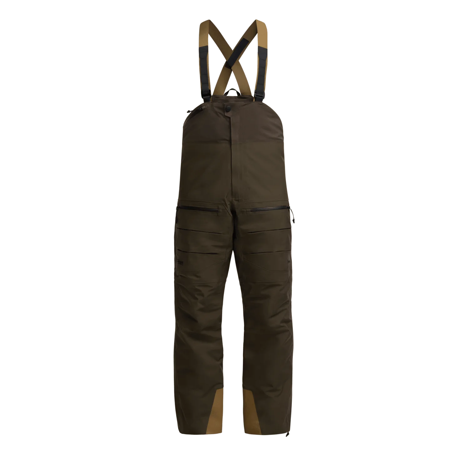 Sitka;s apex of warmth, weather protection and durability from marsh to mountain top. The 100% waterproof, breathable GORE-TEX fabric and body-mapped PrimaLoft® down and synthetic insulation blends subdue torrential rain, howling winds and frigid temperatures with ease. Protection provided by a 75-denier ripstop face fabric ensures lasting durability when hunkering down in jagged glassing spots or frozen crop stubble. A trio of zippered pockets keep essential gear and valuables secure and protected from the elements. The Blizzard Pro Bib features fully adjustable suspenders to provide the perfect fit within any system. Own the elements with this powerhouse of winter-weather protection.
